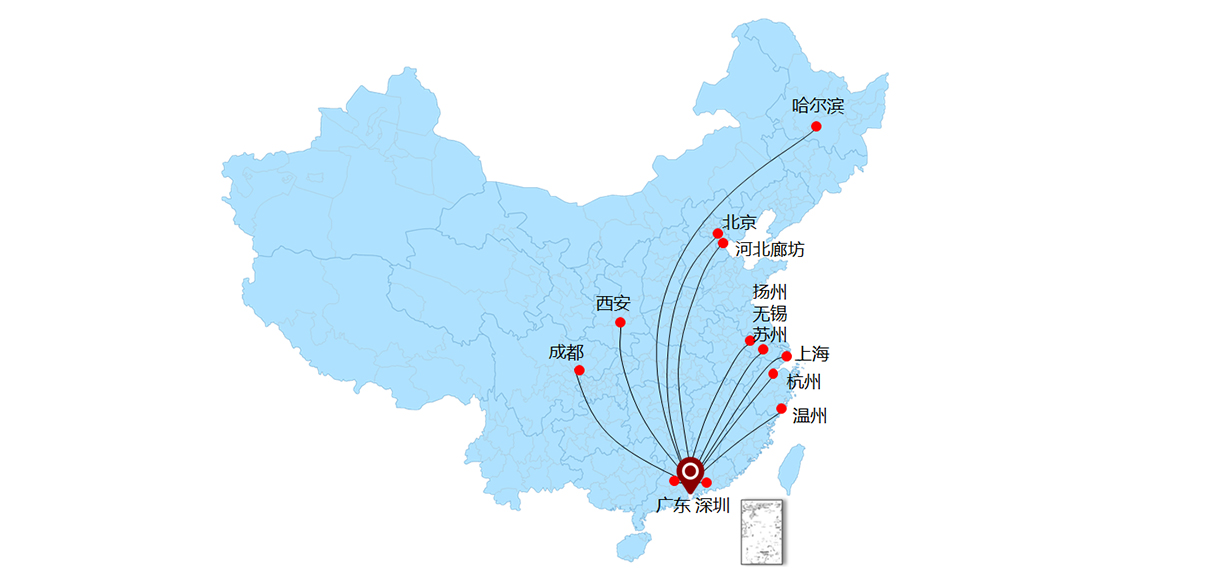 The company is located in the national economic center and an international city - Shenzhen, Guangdong, with convenient transportation, abundant resources and upward competition. After 7 years of rapid development, the company's customer base has expanded from surrounding Guangdong cities to various important cities in China. Whether it is Beijing, Shanghai, Suzhou, Hangzhou, Xi'an, Chengdu and other places all have our important customers. Similarly, we are continuing to expand representative customers in various industries. Relying on high-quality quality assurance and adhering to the principle of customer-oriented, we are striving to move from China to The world, to be the leader in the industry.
