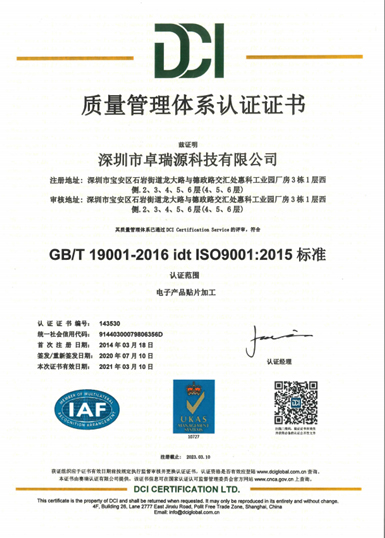 Passed the ISO9001 system certification. During the same period, the company expanded to a plant area of 6,000 square meters, with 6 SMT lines, 7 DIP lines, 2 spraying lines, and 350 employees.