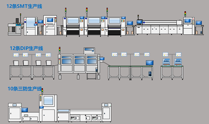 The company has brand-new production equipment, excellent management and technical team, fast response speed and good service awareness, and can provide customers with SMT, DIP, ICT testing, FT testing, conformal paint coating, machine assembly, testing, Aging and other full-process services.